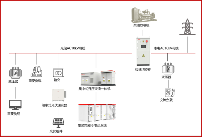 方案具備并離網毫秒級無縫切換能力(最快16ms),確保負載無感知,支持黑啟動與智能調度。
