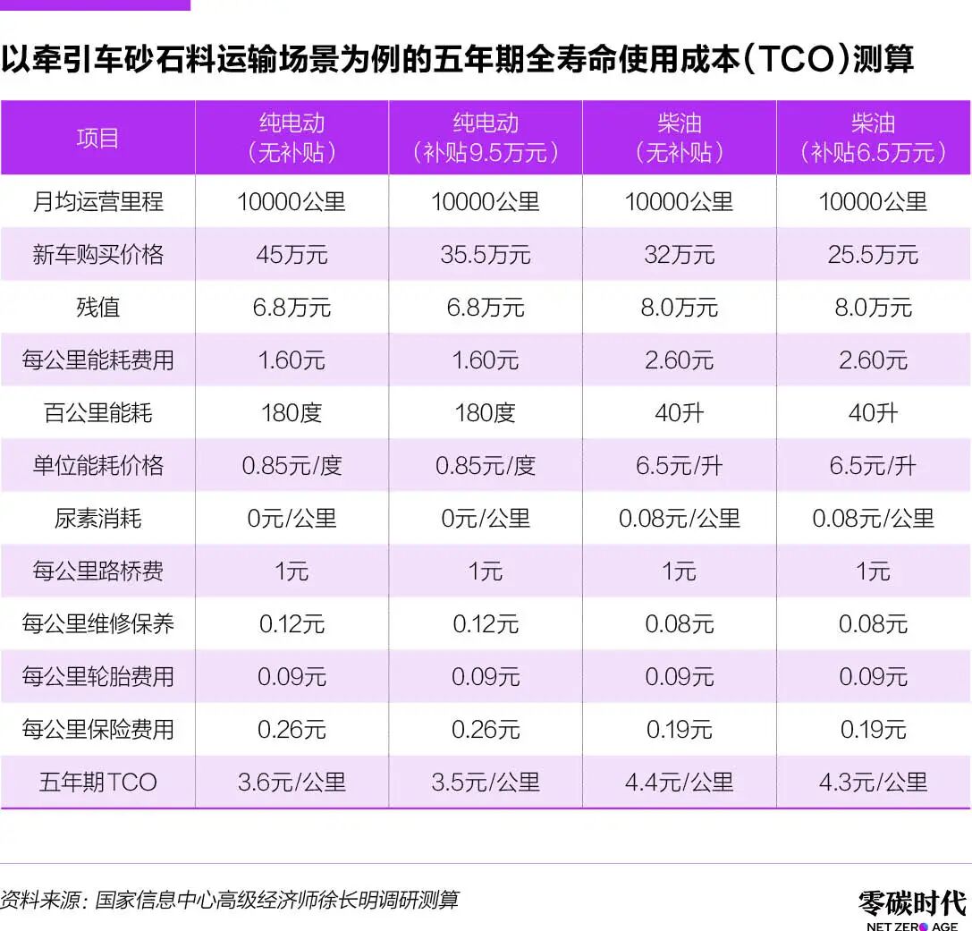 雖然政策驅(qū)動是2025年新能源重卡爆發(fā)的重要動力,但新能源重卡讓消費者愿意買單,根本原因還是經(jīng)濟性優(yōu)勢,新能源重卡在全壽命使用成本(TCO)上已經(jīng)建立優(yōu)勢。夏楠在采訪中算了一筆賬,目前的新能源重卡在十年運營周期內(nèi),相比燃油車可節(jié)省約120萬元的成本。
