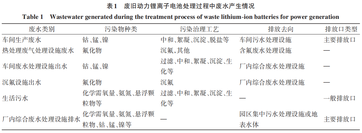 總體而言,廢舊動力鋰離子電池回收過程產(chǎn)生的典型廢水具有高鹽分、COD和重金屬等特征,同時還含有一定的氮、氟和磷污染物。