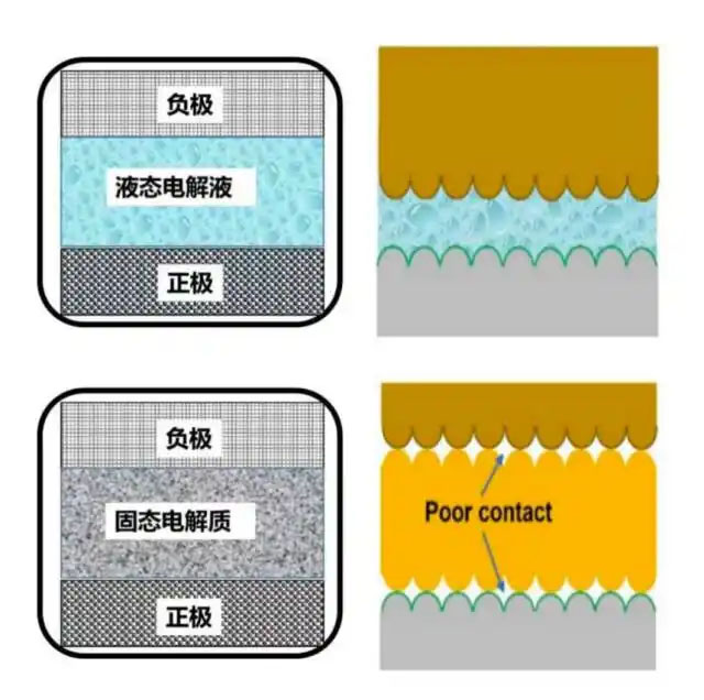 然而,固態(tài)電池的目標是用堅固且不易燃的固態(tài)電解質(zhì)取代這條易燃的“運輸通道”。設(shè)想雖好,一個根本難題隨之而來:如何讓固體正負極和固體電解質(zhì)之間,也能完美浸潤、“親密無間”?