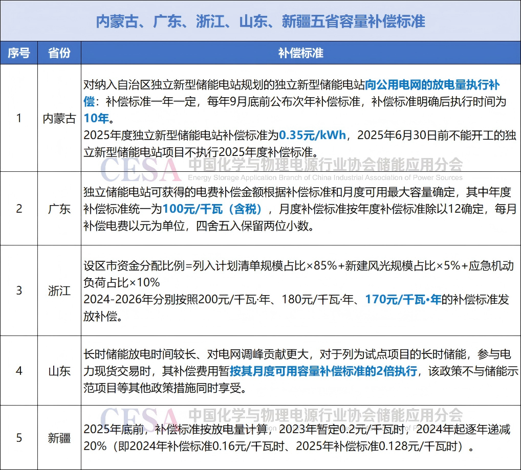 內(nèi)蒙古在政策中指出,“對納入自治區(qū)獨(dú)立新型儲能電站規(guī)劃的獨(dú)立新型儲能電站向公用電網(wǎng)的放電量執(zhí)行補(bǔ)償:補(bǔ)償標(biāo)準(zhǔn)一年一定,每年9月底前公布次年補(bǔ)償標(biāo)準(zhǔn),補(bǔ)償標(biāo)準(zhǔn)明確后執(zhí)行時(shí)間為10年”“2025年度獨(dú)立新型儲能電站補(bǔ)償標(biāo)準(zhǔn)為0.35元/kWh”。