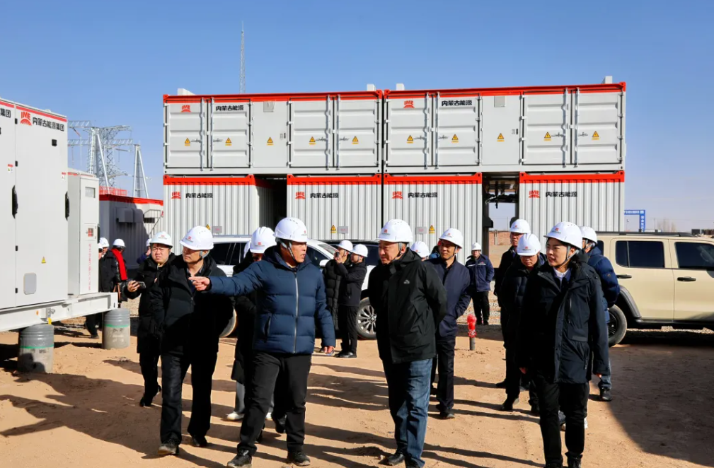 與會(huì)人員實(shí)地考察磴口儲(chǔ)能項(xiàng)目
