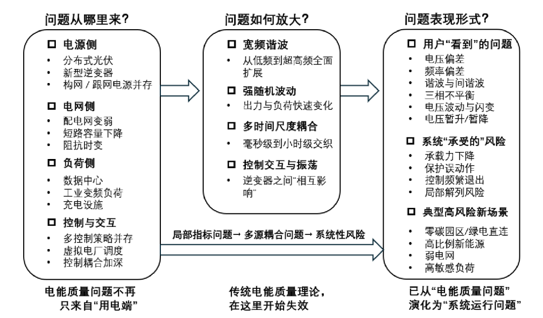 電能質(zhì)量問題正由“局部指標(biāo)性問題”轉(zhuǎn)向“全局系統(tǒng)性問題”:在新能源富集區(qū)域,電壓波動(dòng)與復(fù)雜諧波相互交織、疊加放大,即使單項(xiàng)指標(biāo)合格,仍可能對用戶側(cè)精密設(shè)備與用電體驗(yàn)造成顯著影響。
