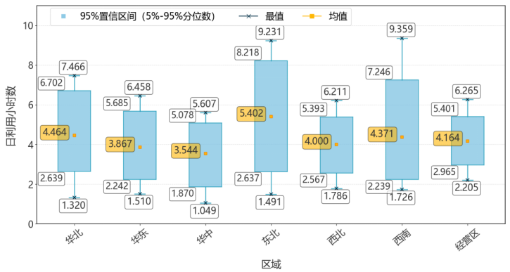 (b)各區(qū)域新能源利用小時(shí)數(shù)箱線圖