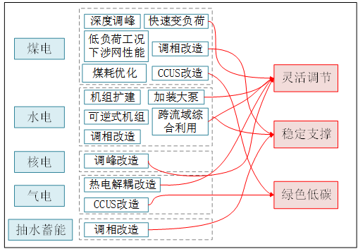 ①電源技術(shù)。煤電向“深調(diào)峰、快調(diào)節(jié)、強(qiáng)支撐、高效率、高韌性、低排放”的新一代煤電發(fā)展,水電推進(jìn)擴(kuò)機(jī)、增容、加裝大泵等改造;核電、氣電推進(jìn)靈活性提升。
