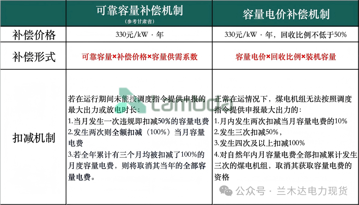 與現(xiàn)行的容量電價補償機制相比,可靠容量補償費用計算方式為:可靠容量補償費用 = 可靠容量×補償價格×容量供需系數(shù)。