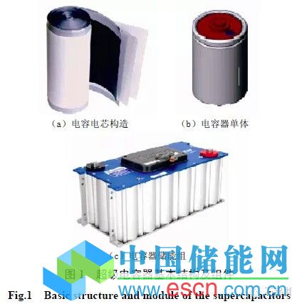 超級電容器是介于傳統(tǒng)電容器和二次電池之間的一種電化學儲能裝置,其容量可達幾百甚至上千法拉。自1975 年Conway 首次提出法拉第準電容的儲能原理以來,超級電容器的研發(fā)已經(jīng)得到了長足的發(fā)展,日本NEC、松下、本田、日立和美國Maxell 等公司開發(fā)出的小型超級電容器已開始推向市場,在小型移動電子設備、汽車能量回收等領域應用。法國SAFT 公司、韓國NESE 公司等也在進行超級電容器的研究和開發(fā)。美國的USMSC計劃、日本的New Sunshine 計劃和歐洲的PNGU計劃均將超級電容器列入開發(fā)內(nèi)容。我國將“超級電容器關鍵材料的研究和制備技術”列入到《國家中長期科學和技術發(fā)展綱要(2006— 2020 年)》,作為能源領域中的前沿技術之一。超級電容器作為一種新型電化學儲能單元,具有容量大、功率密度高、免維護、對環(huán)境無污染、循環(huán)壽命長、使用溫度范 圍寬等優(yōu)點,已在備用電源系統(tǒng)、便攜式電子設備和電動汽車領域有廣泛的應用。對于具有隨機性和間歇性等特點的可再生能源發(fā)電,超級電容器應用于風力發(fā)電中 可以提高風電場的運行安全。超級電容器的基本構造與應用組件如圖1 所示。
