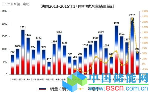 法國純電動汽車的銷量進(jìn)一步增長,新注冊903輛,比2014年1月多出54%,比2013年1月增加17%。