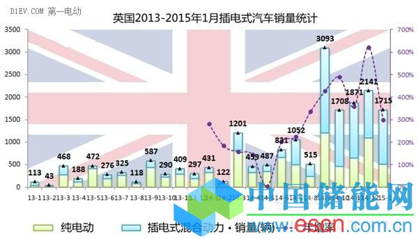 今年一月,英國每賣出97輛新車之中就有一輛是插電式汽車,共售出1715插電式汽車,市場增長率幾乎達(dá)到300%。