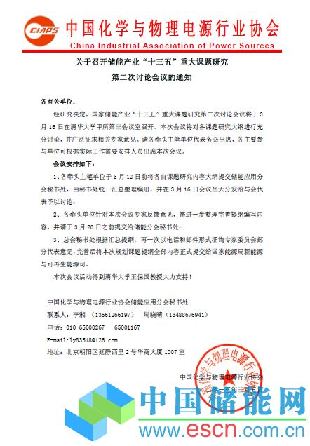 關于召開儲能產(chǎn)業(yè)“十三五”重大課題研究第二次討論會議的通知