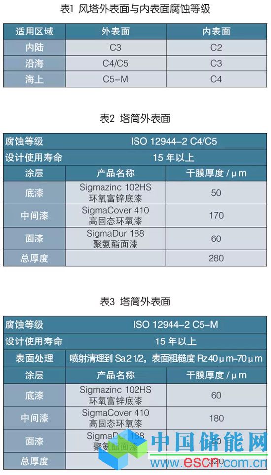從表2、表3中可見(jiàn),這個(gè)防腐標(biāo)準(zhǔn)并沒(méi)有闡述適用于中國(guó)的哪一個(gè)海域及海岸帶的實(shí)際情況,根據(jù)某公司對(duì)其海上風(fēng)電機(jī)組的情況介紹:風(fēng)電機(jī)組在某海域運(yùn)行沒(méi)有問(wèn)題,然而該風(fēng)電機(jī)組在中國(guó)的海南東方南海海岸線上運(yùn)行時(shí),機(jī)艙內(nèi)的電路板及部分葉片確被鹽霧腐蝕,這足可以說(shuō)明各海域的自然氣候條件是有區(qū)別的,當(dāng)然應(yīng)該區(qū)別對(duì)待,所以我認(rèn)為應(yīng)該根據(jù)海南的具體自然氣候條件情況,裝在海南海岸帶上的風(fēng)電機(jī)組應(yīng)該按該標(biāo)準(zhǔn)中海上風(fēng)電機(jī)組防腐標(biāo)準(zhǔn)執(zhí)行,才能夠更加安全。