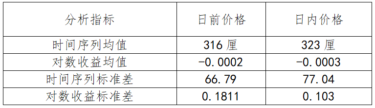 表1 日前價格和日內(nèi)價格基本指標統(tǒng)計