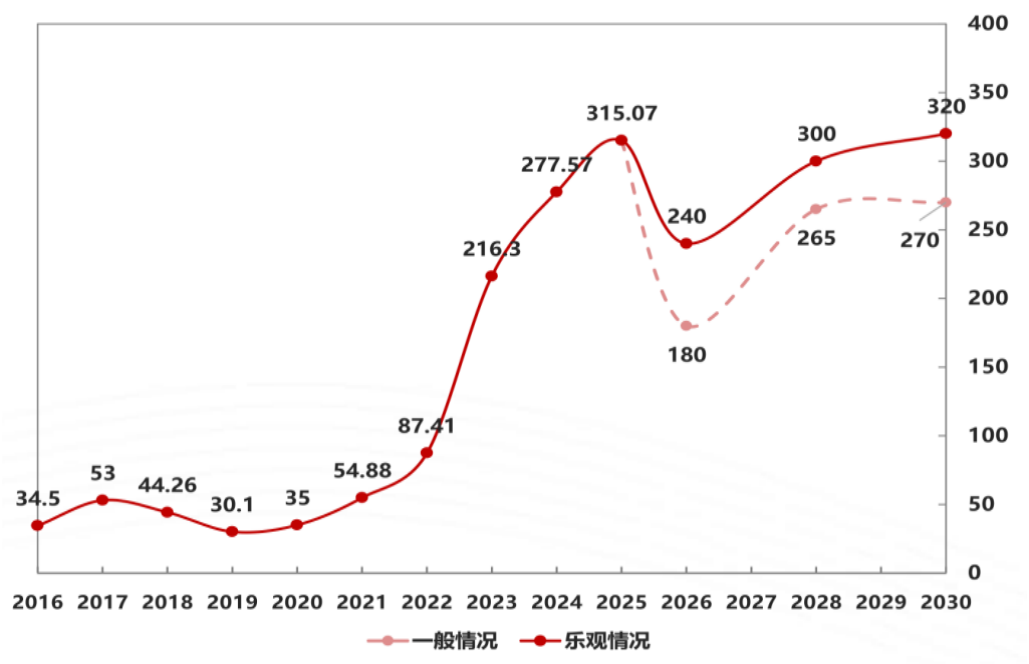中國(guó)儲(chǔ)能網(wǎng)訊:歲末年初,多家機(jī)構(gòu)下調(diào)了國(guó)內(nèi)光伏新增裝機(jī)預(yù)期。中國(guó)光伏行業(yè)協(xié)會(huì)預(yù)測(cè),2026年,國(guó)內(nèi)光伏裝機(jī)規(guī)模將從2025年315.07吉瓦的實(shí)際裝機(jī)規(guī)模降至180~240吉瓦,之后緩慢回升,到“十五五”末期回到與2025年持平區(qū)間。彭博新能源財(cái)經(jīng)(BNEF)光伏產(chǎn)業(yè)分析師表示,2026年中國(guó)的光伏新增裝機(jī)將出現(xiàn)下滑,預(yù)期規(guī)模為264吉瓦(交流側(cè))左右。國(guó)金證券在其光伏2026年度策略中指出,2026年國(guó)內(nèi)裝機(jī)較大概率出現(xiàn)光伏平價(jià)以來(lái)的首次負(fù)增長(zhǎng)。