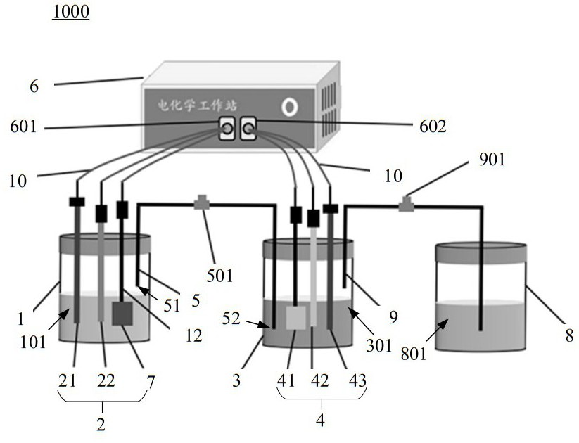 該圖為本申請(qǐng)示出的一種電極析氯性能測(cè)試裝置的示意圖
