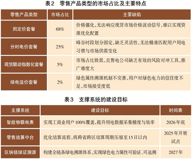 零售產(chǎn)品創(chuàng)新薄弱。當(dāng)前零售市場產(chǎn)品種類單一、創(chuàng)新性不足,難以適配多樣化的用戶需求與現(xiàn)貨市場變化,具體情況如表2所示。