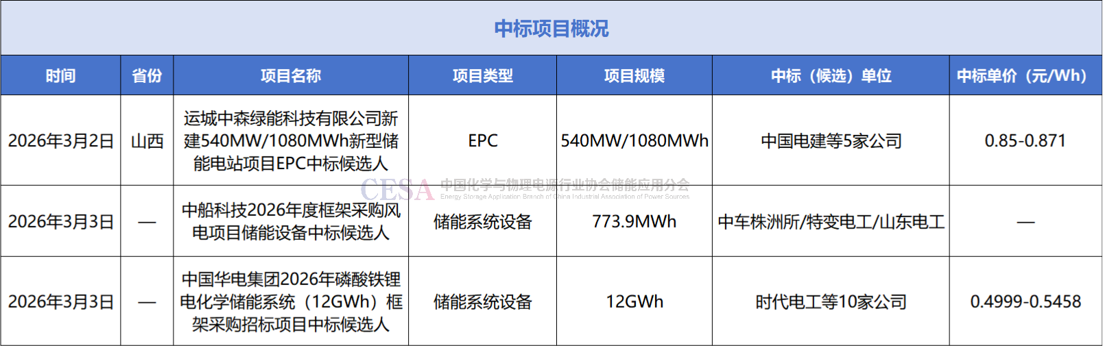 1、0.4999-0.5458元/Wh!中國(guó)華電2026年12GWh儲(chǔ)能系統(tǒng)框采中標(biāo)候選人公示