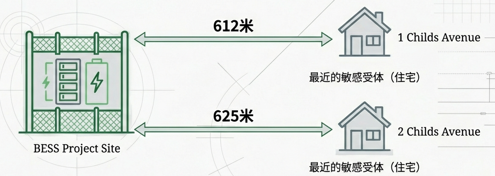 如Capricorn BESS項目,噪聲敏感受體為上圖的,Child Avenue 1、Child Avenue 2
