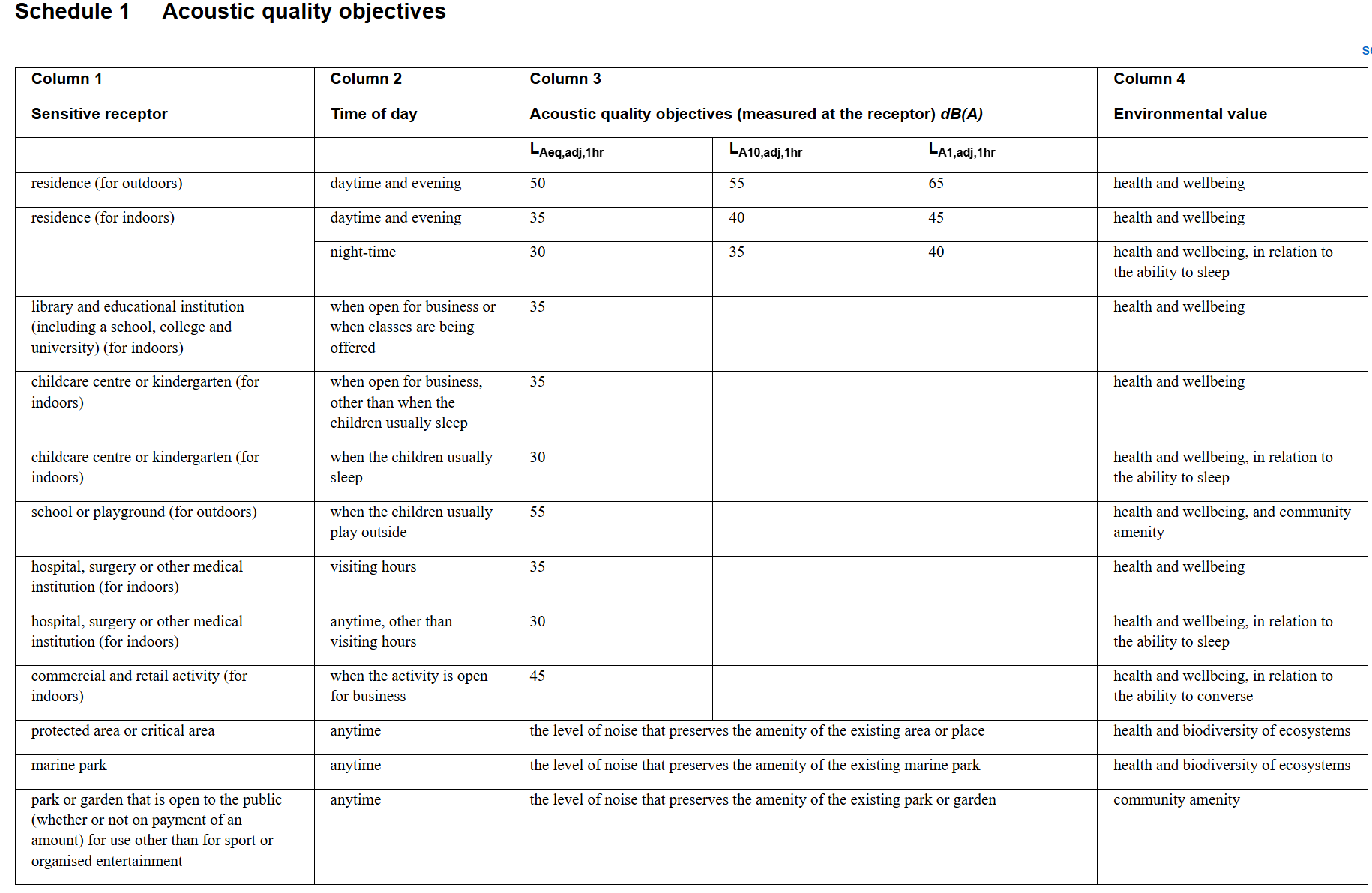 如EPP 2019 附表1 提供了不同類型的敏感受體對應(yīng)的噪聲指標及其限值。