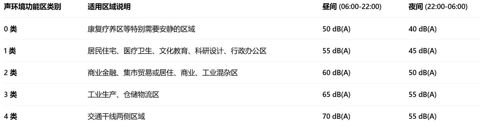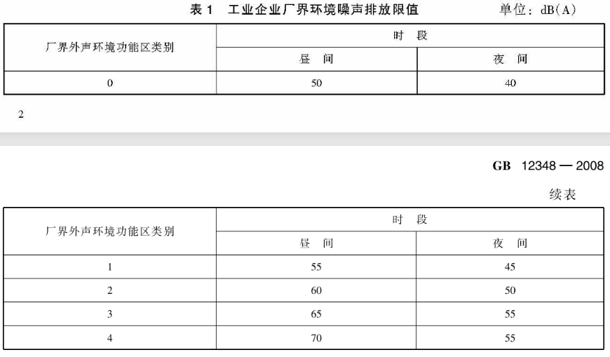 GB 12348根據(jù)廠界外的聲環(huán)境功能區(qū)類別,規(guī)定噪聲排放限值: