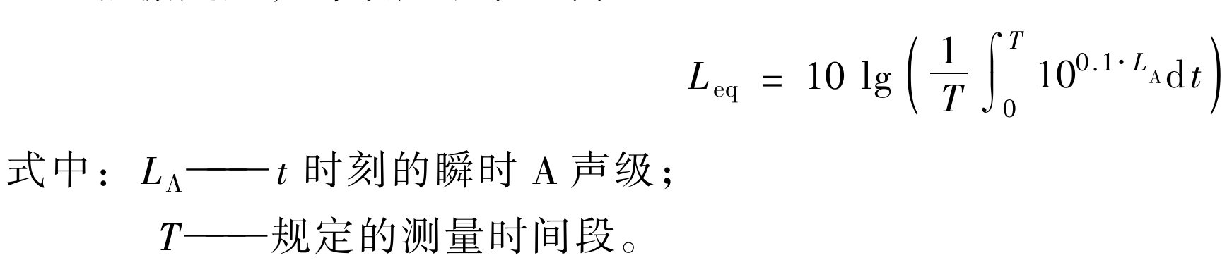 上述引用的GB3096、GB12348的噪聲限值,測量單位dB(A)對應(yīng)的物理量為Leq與前文術(shù)語LAeq,adj,1hr定義相同,計算公式為: