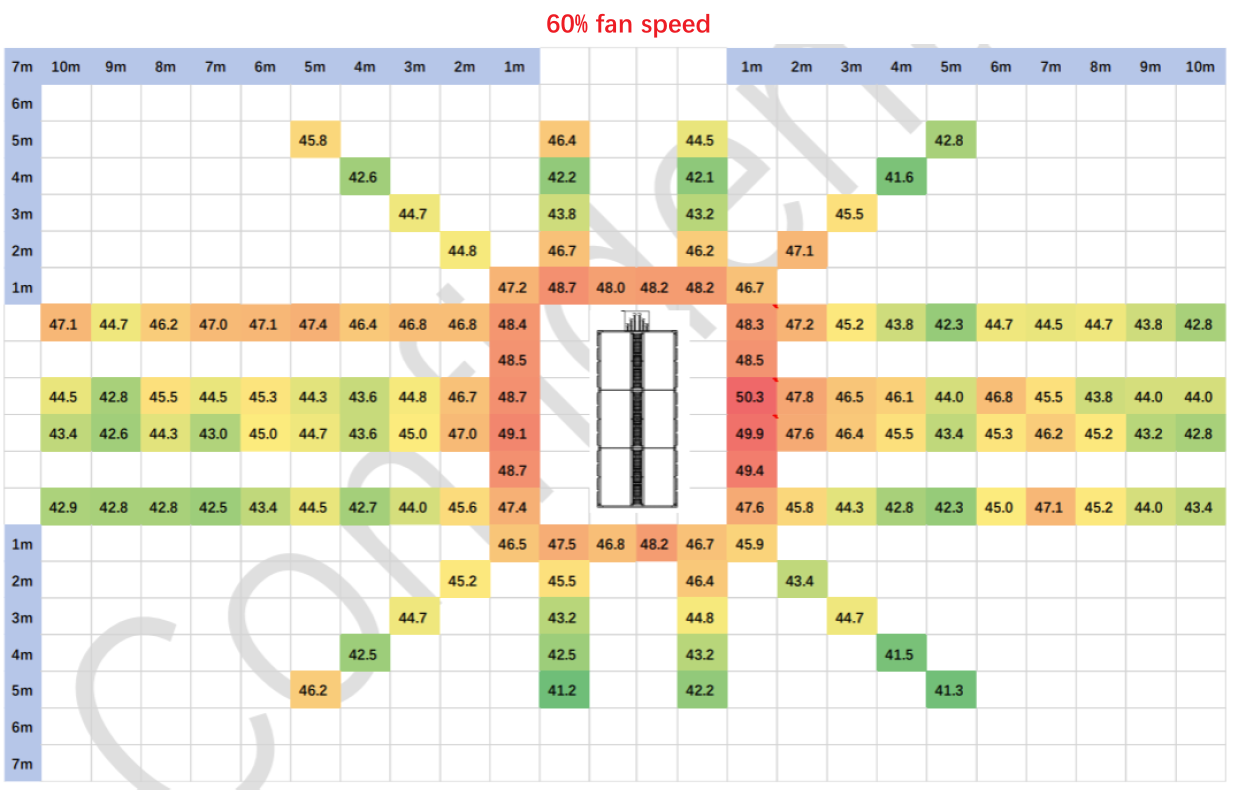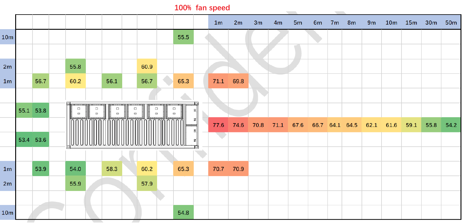 1)電池艙風(fēng)扇100%、80%、60%轉(zhuǎn)速下的噪聲