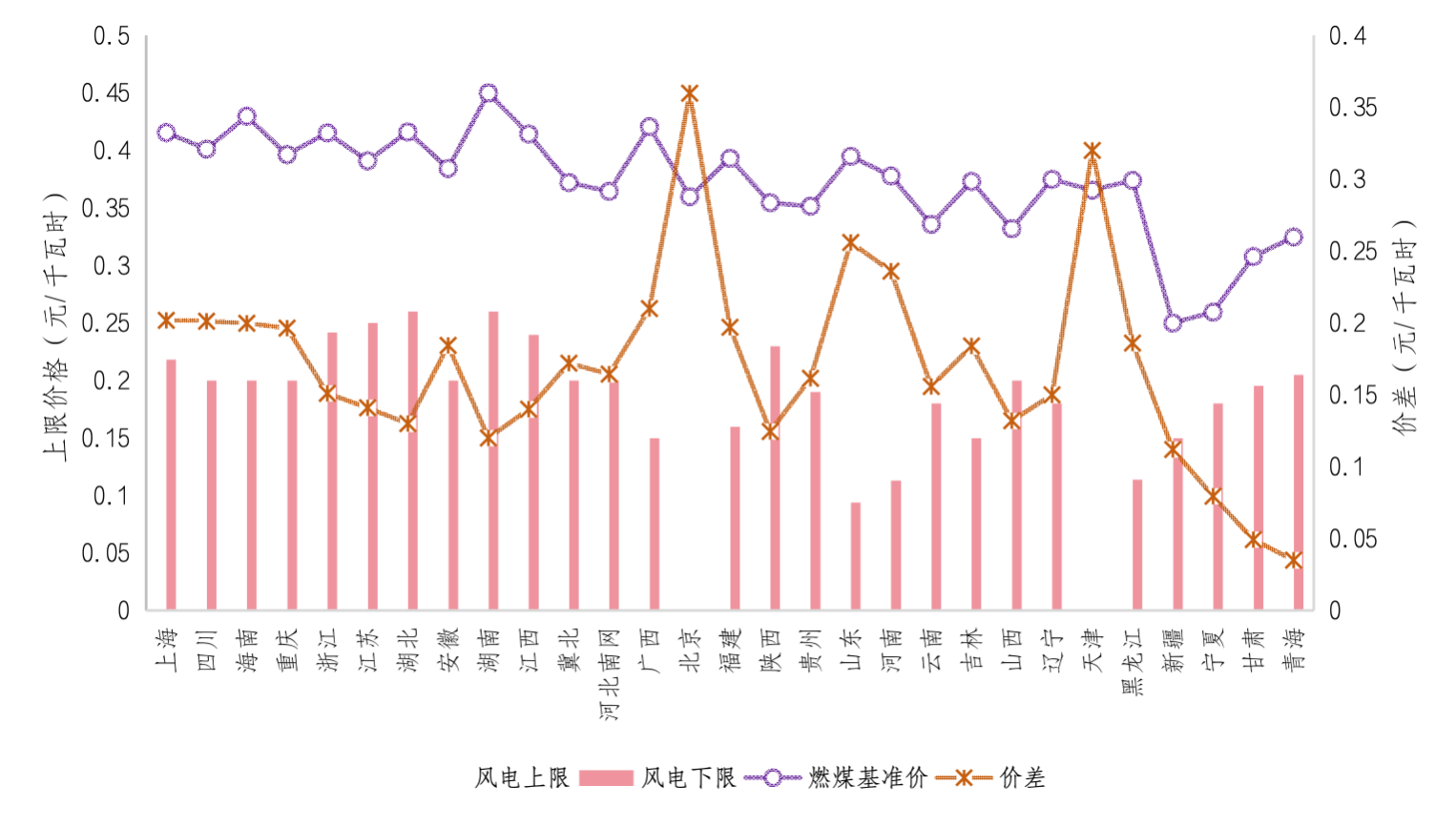 圖2 各省風(fēng)電項目競價限值情況