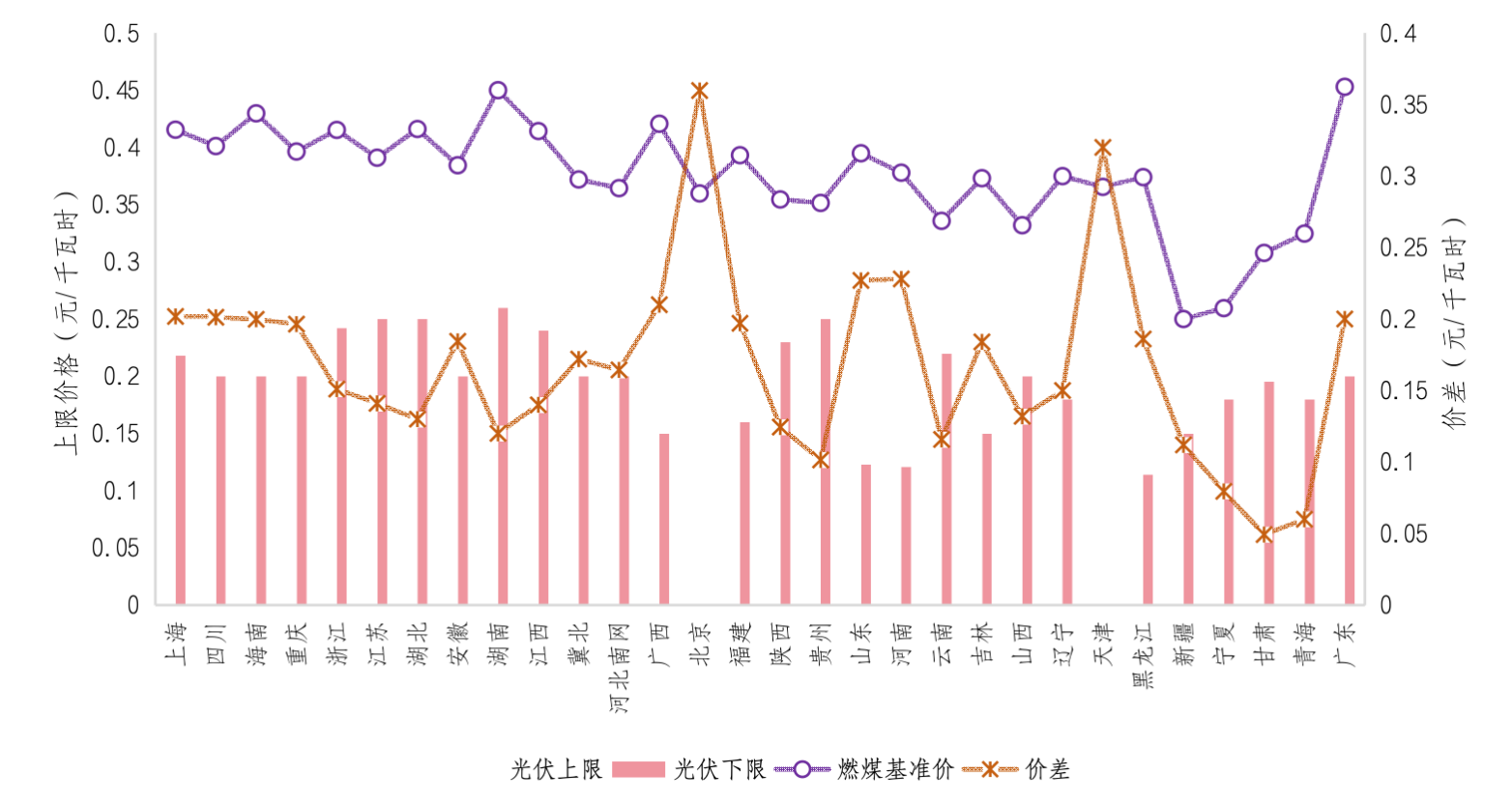 圖3 各省光伏項目競價限值情況