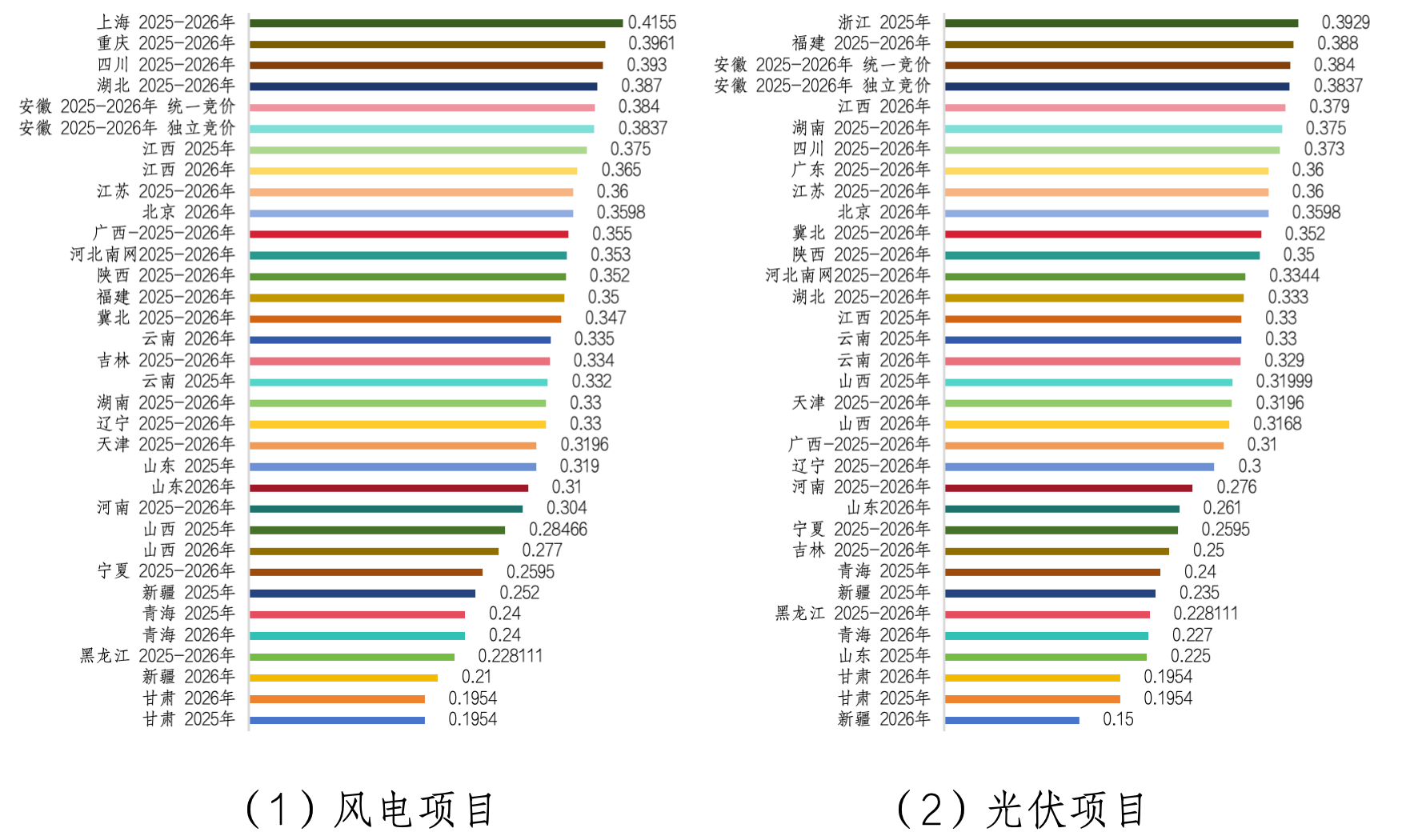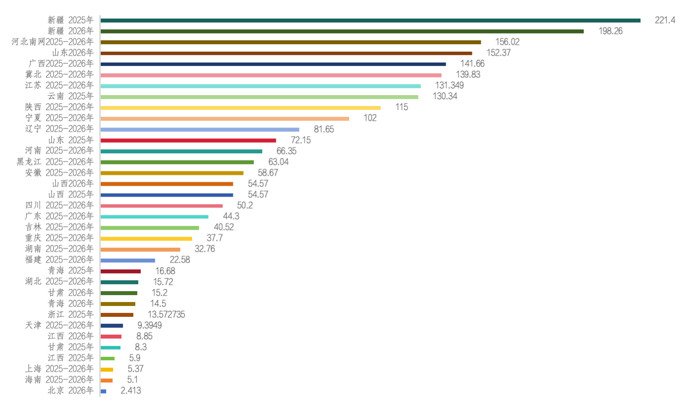 截至2026年2月底,除貴州、蒙西、蒙東外,其余29個省/區(qū)已完成首次增量項目競價工作。競價結(jié)果反映出資源稟賦、消納能力與電價承受力的區(qū)域差異。標(biāo)志著136號文構(gòu)建的分區(qū)分類競價機制生效,推動資源配置效率提升,為產(chǎn)業(yè)高質(zhì)量發(fā)展注入新動能。
