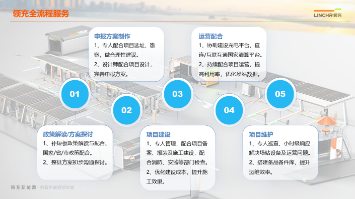 云霄縣在項目建設前期面臨眾多縣域市場相同的問題,項目申報時間緊急,相關人員對于行業(yè)理解不深,對于充電樁后期運營水平不高等。在領充與福建云霄圣城投資集團的合作中,領充建立了一站式服務體系。從政策申報輔導、場地選址、設備安裝、后期運營以及充電站升級等全流程服務。