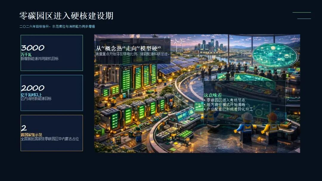 內(nèi)蒙古的零碳園區(qū)已不再是單純的招商引資口號(hào),而是被精準(zhǔn)量化為綠電直連比例、儲(chǔ)能配建規(guī)模和單位能耗碳足跡的精密財(cái)務(wù)與物理模型。誰(shuí)能最先吃透這套“綠電+配網(wǎng)+儲(chǔ)能+碳資產(chǎn)”的復(fù)合運(yùn)作機(jī)制,誰(shuí)就能在內(nèi)蒙古下一輪的產(chǎn)業(yè)大洗牌中,提前鎖定最廉價(jià)的能源與最具國(guó)際競(jìng)爭(zhēng)力的低碳通行證。