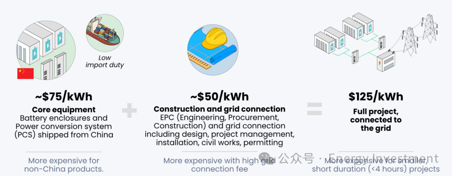 高關(guān)稅市場(chǎng):核心設(shè)備成本可達(dá)$100/kWh或更高