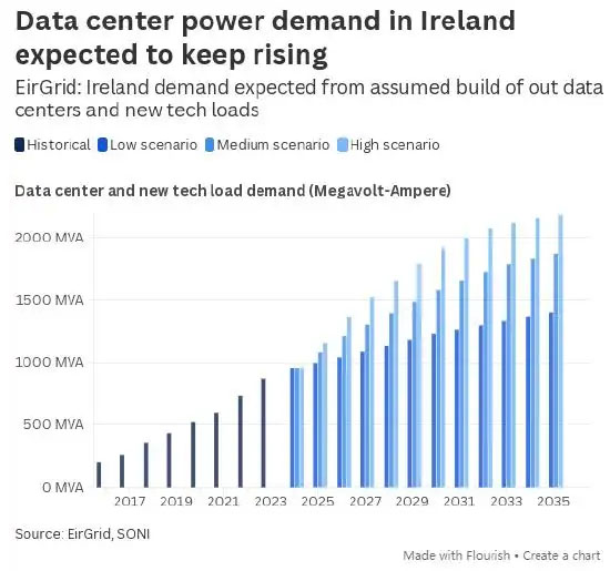 愛爾蘭國家電網(wǎng)運營商 2 月底警告,隨著消費者用電方式變化,滿足電力需求可能 “充滿挑戰(zhàn)”,并指出數(shù)據(jù)中心是需求增長的主要推手。