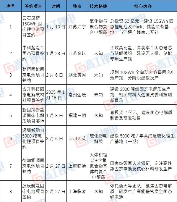 下圖是2026年以來,簽約的8個(gè)固態(tài)電池項(xiàng)目動(dòng)態(tài):