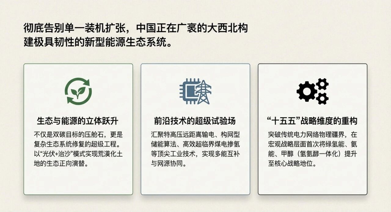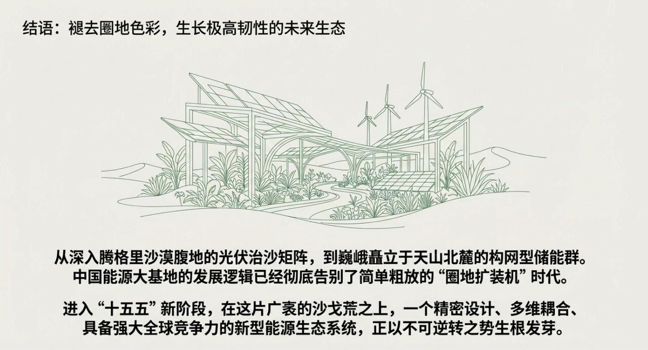 從深入騰格里沙漠腹地的百萬(wàn)千瓦級(jí)光伏治沙矩陣,到巍峨矗立于天山北麓的構(gòu)網(wǎng)型儲(chǔ)能與極限調(diào)峰煤電群,這些代表著國(guó)家意志與頂尖工業(yè)實(shí)力的超級(jí)能源大基地,共同勾勒出了中國(guó)應(yīng)對(duì)全球氣候變化、保障國(guó)家長(zhǎng)遠(yuǎn)能源安全的宏偉骨架。
