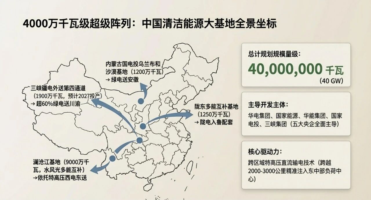 在中國(guó)現(xiàn)行的能源空間戰(zhàn)略中,大型清潔能源基地的選址與建設(shè)高度依賴于自然資源的稟賦特征以及跨區(qū)域電網(wǎng)的輸送能力。