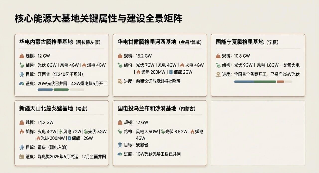 為了更為直觀呈現(xiàn)當(dāng)前中國(guó)最具代表性的部分核心能源大基地項(xiàng)目的核心屬性與建設(shè)狀態(tài),特梳理歸納如下表所示: