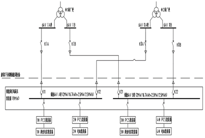 建設(shè)4MW/30S超級(jí)電容+5MW/5MWh鋰電池,儲(chǔ)能系統(tǒng)6kV段,分為A、B兩段,每段2MW/30S+2.5MW/2.5MWh。儲(chǔ)能系統(tǒng)6 kV A、B 段分別接入號(hào)1、號(hào)2機(jī)組6kV母線A、B段??煞謩e輔助號(hào)1、號(hào)2機(jī)組以2MW/30 S+2.5 MW/2.5MWh 同時(shí)參與調(diào)頻,或單獨(dú)任何一臺(tái)機(jī)組單機(jī)以4MW/30S+5MW/5MWh參與調(diào)頻,利用超級(jí)電容和電化學(xué)儲(chǔ)能混合儲(chǔ)能方式,尤其是混合儲(chǔ)能響應(yīng)速度快的特點(diǎn)配合火電機(jī)組做 AGC 調(diào)頻,可有效緩解由于頻繁 AGC 調(diào)節(jié)造成的火電機(jī)組設(shè)備疲勞和磨損,能夠穩(wěn)定機(jī)組出力,改善機(jī)組燃煤效率,提升機(jī)組的可用率及使用壽命,同時(shí)可獲得調(diào)頻補(bǔ)償收益以及有效避免兩個(gè)細(xì)則考核。