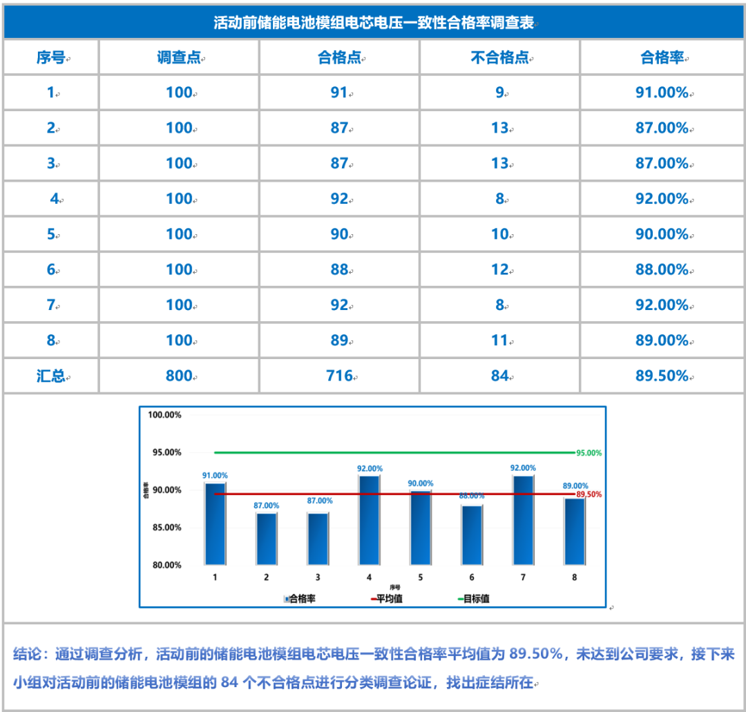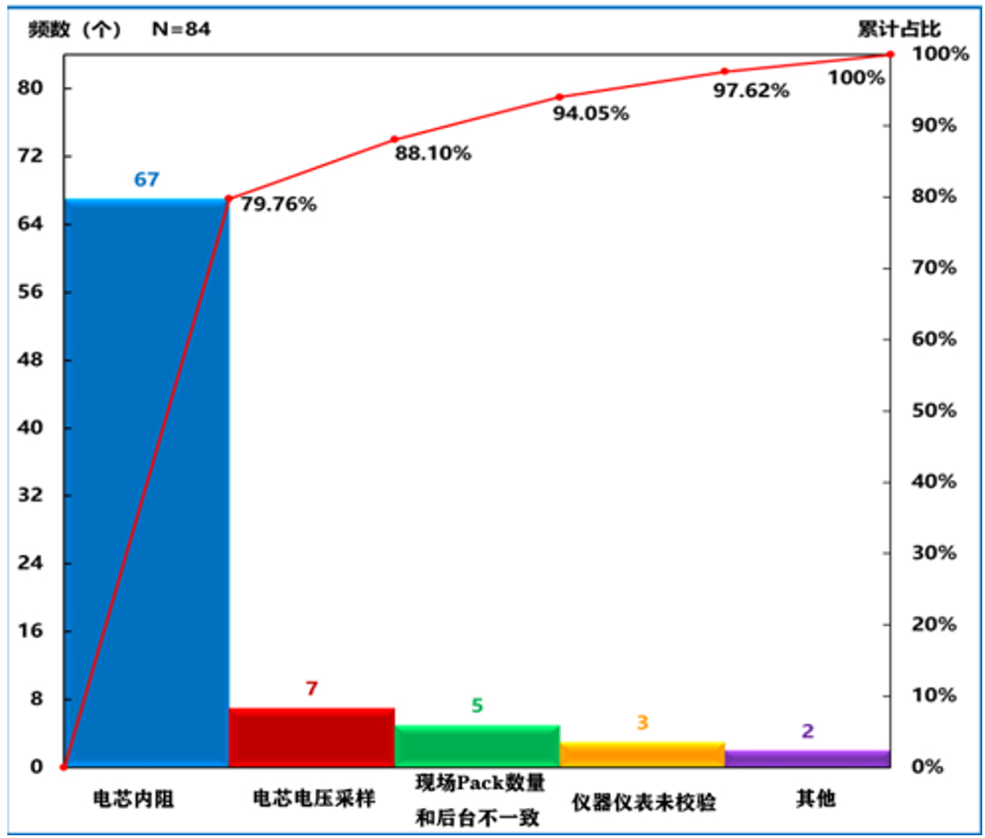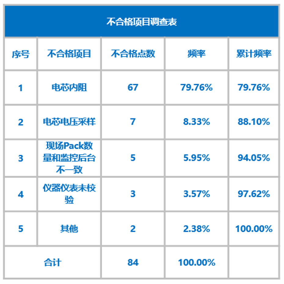 ②對活動前的儲能電池模組電芯電壓的84個不合格點進行分類調查論證。
