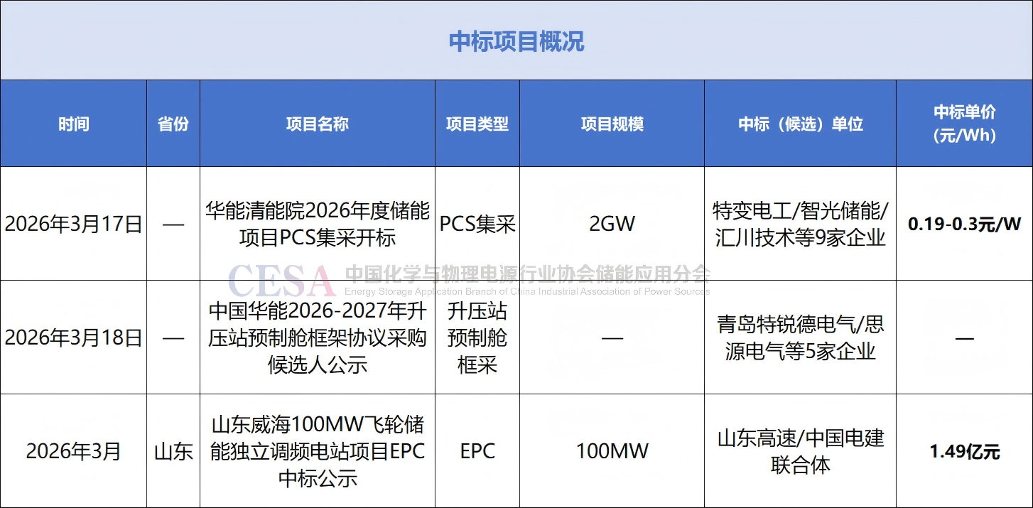 3月17日,華能清能院2026年度儲(chǔ)能項(xiàng)目?jī)?chǔ)能交流側(cè)(變流升壓)物料及集成代加工框架協(xié)議采購(gòu)中標(biāo)結(jié)果公示。
