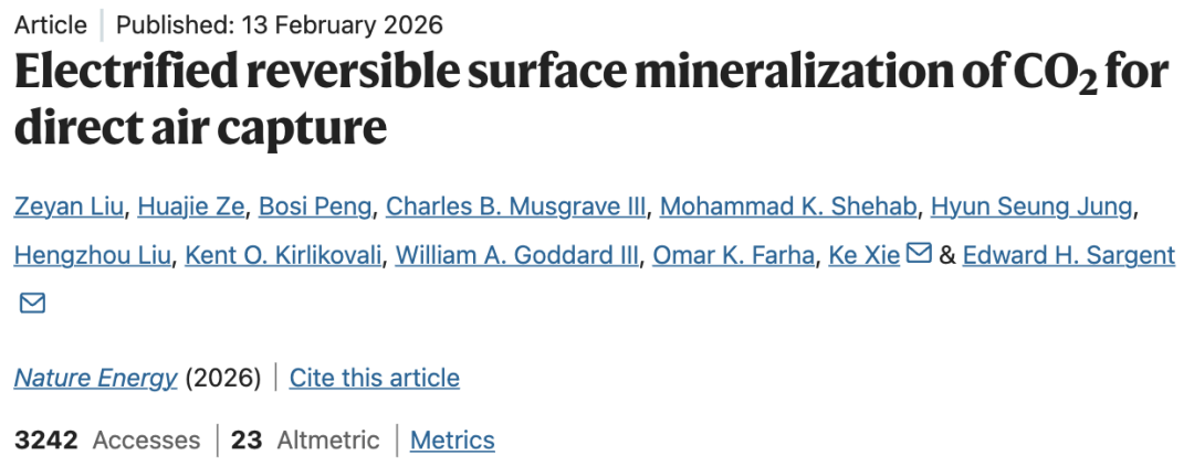 近日,發(fā)表在頂級期刊《自然·能源》上的一項新研究,給出了一個令人耳目一新的解決方案。來自多倫多大學(xué)的Edward Sargent團(tuán)隊,提出了一種"電驅(qū)動可逆表面礦化"技術(shù)——聽名字略顯復(fù)雜,但背后的思路其實十分優(yōu)雅。