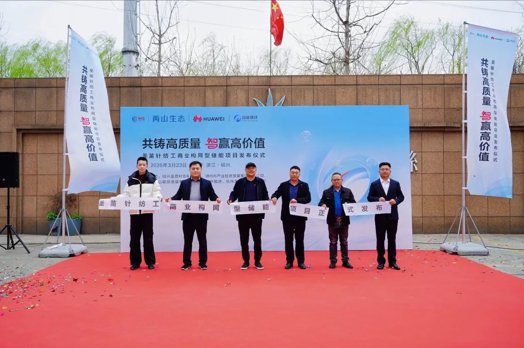 中國(guó)儲(chǔ)能網(wǎng)訊:3月23日,由紹興圣苗針紡有限公司與華為數(shù)字能源聯(lián)合打造的3.44MWh儲(chǔ)能項(xiàng)目在紹興柯橋正式投運(yùn)。紹興圣苗針紡有限公司、湖州市產(chǎn)業(yè)投資發(fā)展集團(tuán)有限公司、湖州市兩山生態(tài)資源運(yùn)營(yíng)有限公司、華為數(shù)字能源、海鹽晨達(dá)新能源科技有限公司等領(lǐng)導(dǎo)受邀出席,共同見證紡織行業(yè)綠色低碳轉(zhuǎn)型標(biāo)桿項(xiàng)目落地。