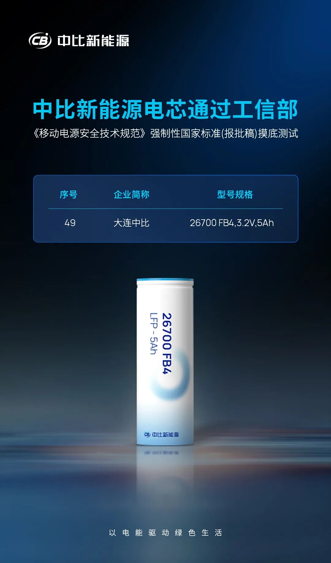 近日,中比新能源子公司大連中比動力電池有限公司(以下簡稱大連中比)自主研發(fā)制造的26700 FB4電池,順利通過第八批測試。