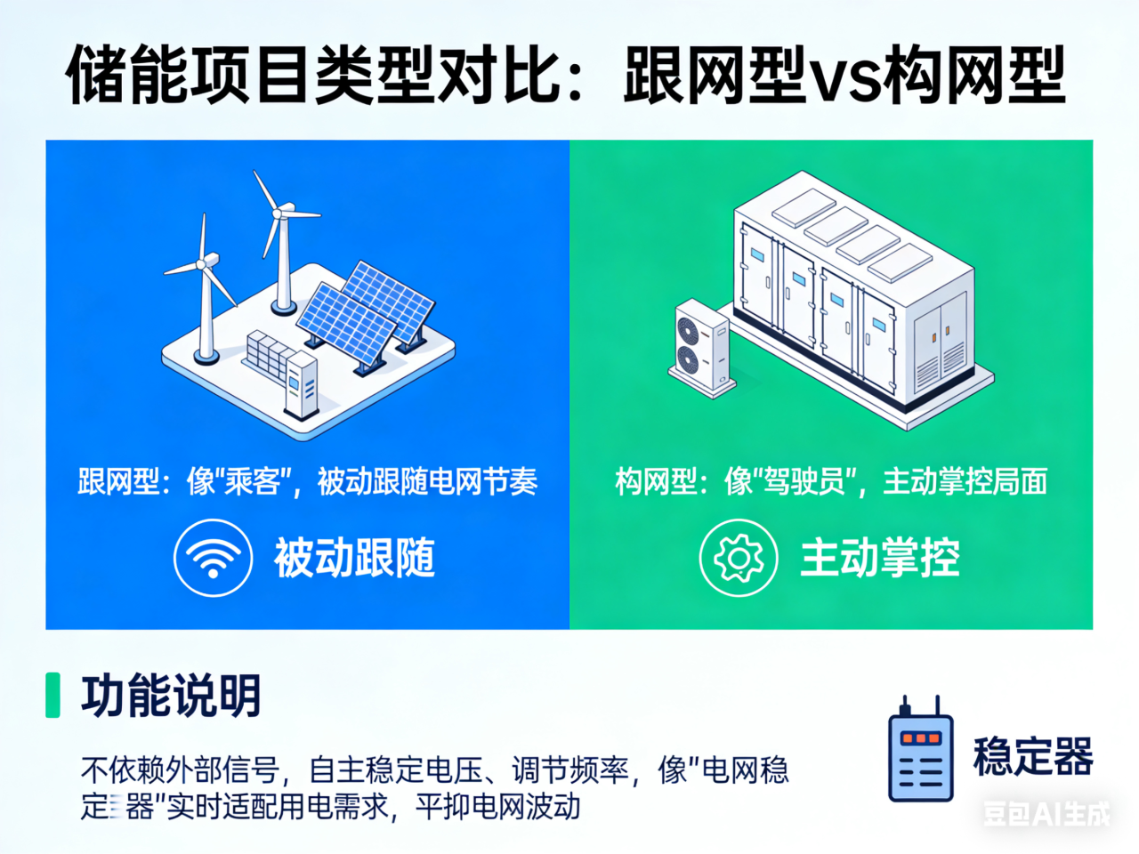 “目前,儲能項(xiàng)目主要分為跟網(wǎng)型、構(gòu)網(wǎng)型等類別?!辟F州中調(diào)運(yùn)行方式部副總經(jīng)理安甦介紹說,“傳統(tǒng)跟網(wǎng)型新能源電站接入電網(wǎng),就像一名‘乘客’,只能被動跟隨電網(wǎng)節(jié)奏。而構(gòu)網(wǎng)型儲能電站則像一位經(jīng)驗(yàn)豐富的‘駕駛員’,能主動掌控局面?!彼灰蕾囃獠啃盘?,可自主穩(wěn)定電壓、調(diào)節(jié)頻率,像“電網(wǎng)穩(wěn)定器”一樣實(shí)時適配用電需求,在電網(wǎng)波動的瞬間主動發(fā)力,平抑波動,確保電力安全可靠供應(yīng)。
