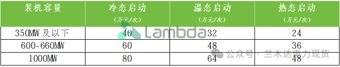 圖3 | 燃煤機不同狀態(tài)啟動費用上限表