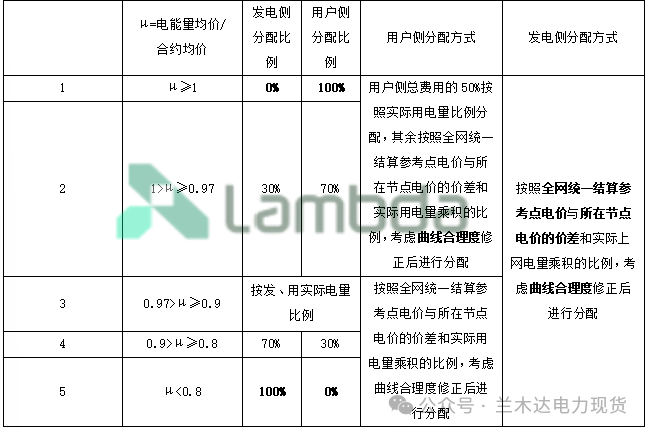 阻塞盈余返還按高耗能、一般行業(yè)(不含參與單邊競價優(yōu)先成交行業(yè))用戶日清分電能量均價除以中長期合約均價(不含環(huán)境價值)核算的費用分配比例系數(shù)μ,確定阻塞盈余費用分配比例及分配方式。