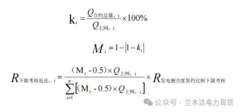R下限考核返還,i為市場化機組i的月度簽約比例下限考核的返還費用。
