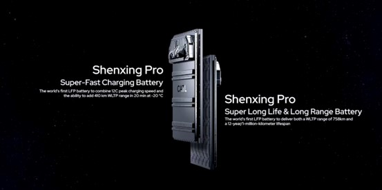 2、神行Pro電池:神行Pro電池長壽命版可提供758公里的WLTP續(xù)航能力,使用12年或行駛100萬公里,同時保持70%的原始容量(SOH);神行Pro超充版在實現(xiàn)683公里續(xù)航能力(WLTP工況)的同時還具備12C的峰值充電能力,充電10分鐘即可補能478公里(WLTP工況)。