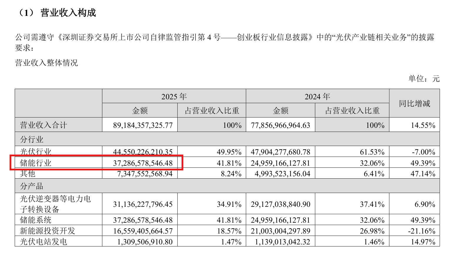 其中,儲(chǔ)能系統(tǒng)2025年?duì)I收372.87億元,營(yíng)收規(guī)模同比增加49.39%,占總營(yíng)收41.81%。