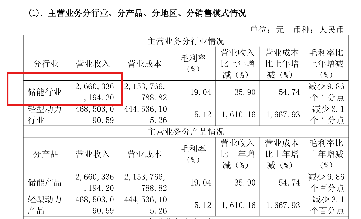其中,儲(chǔ)能電池2025年?duì)I收244.41億元,營(yíng)收規(guī)模同比增加28.45%,占總營(yíng)收39.76%。