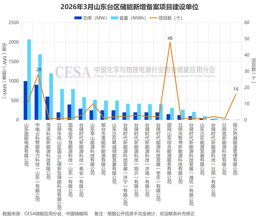 表 2026年3月山東新增備案儲(chǔ)能電站項(xiàng)目